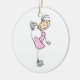 Rosa Mädchen-Strichmännchen-Eis-Skater Keramikornament
