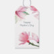 Hübsche Geschenketiketten mit feminininem Aquarellblumendesign und lässiger handgeschriebener Schrift. Die Beispielformulierung liest Happy Mother's Day, aber die Vorlage ist für Sie Set, um dies zu bearbeiten, wenn Sie möchten und Sie haben auch die Möglichkeit, Ihre eigene Nachricht auf der Rückseite hinzuzufügen. Das Design besteht aus rosa Magnolia-Blume mit schiefergrüner Typografie auf weißem Hintergrund. Bitte stöbern Sie in unserem Shop für passende Artikel oder andere Designs.