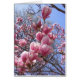 Blankokarte mit rosa Magnolien gegen blauen Himmel