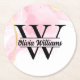 Rosa Marmormonogramm | Girly Modern Gold Glitzer Runder Pappuntersetzer