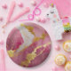 Rosa Marmormuster mit Gold Pappteller