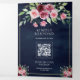 Rosa Marsala Floral Ampere und Navy QR Code Hochze Dreifach Gefaltete Einladung