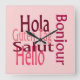Sag Hallo in fünf Sprachen mit einer rosa Wanduhr. Diese Uhr fügt Ihrer Wand eine schöne Farbe hinzu, sie ist perfekt für Mädchen Zimmer Dekoration.