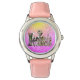 Kinderuhr aus Edelstahl mit rosa Lederarmband