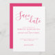 Diese minimale und moderne Wedding Save the Date Einladung verfügt über einen eleganten und schönen Script-Schriftart, ergänzt durch modernen Text in heißen Rosa auf der Vorderseite der Einladung. Dieses Stück ist für Sie bereit, um mit den Details Ihres besonderen Tages. Als Teil einer ständig wachsenden Kollektion stöbern Sie in der eleganten, rosafarbenen Hochzeitskollektion für Aquarellfarben mit passenden Gegenständen.