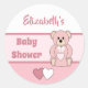 Personalisieren Sie diese Babyduschaufkleber mit dem Namen der Mutter zu sein. In Rosa und Weiß mit einem niedlich rosa Teddybär und einigen Herzen dekoriert. Verwenden Sie, um auf Gastgeschenk-Taschen oder vielleicht für einen Umschlag Aufkleber.