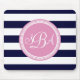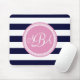 Rosa Mit Monogramm blauer Streifen Personalisiert Mousepad