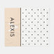 Diese elegante und schicke Decke ist mit schwarz-weißen Polka-Punkten ausgestattet, die unten in Rosa gestrichen sind. Personalisieren Sie mit Ihrem Namen und Initial.