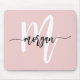 Erweitern Sie Ihren Schreibtisch mit dem Pink Modern Script Girly Monogram Name Mouse Pad. Dieses auffällige Pad präsentiert ein stilvolles Rosa-Design mit einem zeitgenössischen Script-Monogramm und fügt Ihrem Arbeitsbereich eine persönliche Touch hinzu. Durch seine langlebige Konstruktion bietet er eine glatte, zuverlässige Oberfläche für mühelose Mausbewegungen. Die rutschfeste Unterlage sorgt für Stabilität, während das lebendige Design einen Hauch von Eleganz verleiht. Ideal für diejenigen, die gewollt haben, Funktionalität mit einem schicken, personalisierten Element in ihrer Zuhause- oder Büroeinrichtung zu kombinieren.