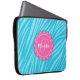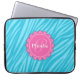 Rosa Moderne Blume Monogram Aqua Blue Zebra Print Laptopschutzhülle