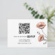 Rosa Mohn Blume QR Code Blumenzwiebelkarte RSVP Karte. Diese Hochzeitskarte verbindet Schönheit und Komfort nahtlos. Mit zarten Skizzen von korallenpfirsichrosa Mohn-Blume, die elegant auf der rechten Seite platziert sind, strahlt das Design Eleganz aus. Die Einführung eines QR-Codes ist eine praktische Lösung für die UAWG im Internet. Ein zartes pfirsichrosa Unterteil verstärkt die raffinierte Ästhetik der Karte.