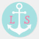 rosa Monogramm auf weißem Anker auf pastellblau Runder Aufkleber