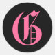 Rosa Monogramm G Runder Aufkleber