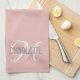 Elegantes, rosafarbenes Küchentuch mit weißem Schriftzeichen und grauem Namen. Personalisieren Sie Ihre Eingabe und Ihren Namen.