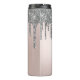 Rosa Monogramm Name Silver Glitzer Tropfen Thermosbecher