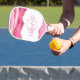 Pinkfarbenes Paddelpaddel in Monogramm, personalisiert mit dem Namen einer Frau oder eines Mädchens und dem Anfangsbuchstaben. Doppelseitig mit dem gleichen Design.