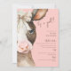 Niedliches Calf Es ist ein Girl Moo-Ving in Bali Baby Dusche Einladung. Es ist ein Mädchen! Pink. Schleife.
