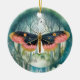 Eine zarte rosa und braune Motte vor dem Hintergrund eines blauen und grünen geheimnisvollen Waldes.