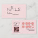 Einfach blush pink Nagelsalon Manicurist Modern Loyalty Card mit stylischer Kalligraphie und QR Code . Bearbeiten Sie den Namen des Nagelkünstlers, das soziale Profil und die Telefonnummer etc.