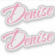 Denise Name in dekorativen blassrosa kursiven Skript-Schriftart Buchstaben. Zwei Kopien.