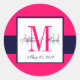 Rosa Navy Blue Monogram Names Gastgeschenk Hochzei Runder Aufkleber