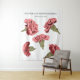 Erstellen Sie ein individuelles Foto-Umfeld für Ihre Hochzeit, wenn Sie Ihre eigene Schlagzeile und Hochzeitsdatum zu diesem Wandteppich hinzufügen, der mit rosa Blume der Nelke illustriert ist.
