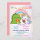 Rosa Niedliche Einhorndinosaurier Regenbogen Gebur Einladung