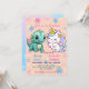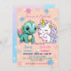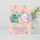 Rosa Niedliche Einhorndinosaurier Regenbogen Gebur Einladung