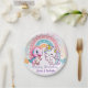 Rosa Niedliche Einhorndinosaurier Regenbogen Gebur Pappteller