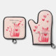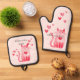Rosa Niedliche Katzenherzen Ofenhandschuh & Topflappen-Set