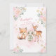 Niedliche pinkfarbene Winterwunderland Wald Geburtstagsmädchen Einladung mit Waldtieren: Fuchs, Hasen und Hirsche.