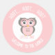 Rosa Niedliches Eule-Hoot Willkommen auf der Welt Runder Aufkleber