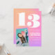 Rosa Orange Einladungen zum 13. Geburtstag Retro Foto Gradienten