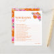 Feiern Sie die zukünftige Mutter mit diesem rosa und orangefarbenen Blumenspiel "Who Knows Mommy Best Game", das perfekt für eine süße und lustige Dusche von Mädchen geeignet ist. Mit lebendigen botanischen Blüten in einem fröhlichen Party im Garten ist es eine schöne Art, Lachen und Erinnerungen auszulösen. Dieses Spiel ist ideal für eine Frühjahr- oder Sommerdusche und bringt die Gäste zum leichtgemachten Duschspass zusammen.