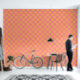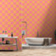 Karierte Tapete in rosa orangefarbener Farbe. Moderne geometrisch geometrisch geometrische Muster Schale und Tapete.