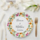 Rosa und orange schlichte, blumengeschmückte Teller für Hochzeitsfeier, Probe Dinner und Brautparty.