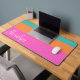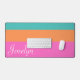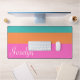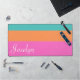 Lebhafte Schreibtischmatte mit breiten, horizontalen Linien in Rosa, Orange und Blau sowie Namenskripte in handgeschriebenen eleganten Schriftart, die Sie leicht anpassen können. Wenn Sie in minimalistisch ästhetische und farbenfrohe Designs sind, ist dieses Produkt für Sie da! Mit dieser personalisierten und stilvollen Matte bringen Sie Farbe und Retro-Vibes in Ihr Zimmer. Sie können meinen Shop PatternTripCo für andere Produkte mit dem gleichen Muster Karo.