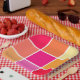 Rosa, orange und gelbe Quadrate Pappteller