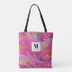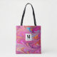 Eine Tasche mit coolem, trippy-psychedelischem Design. Rosa, Orange und blaue Farbtöne, die sich alle umkreisen. Retro Hippie Vibe.