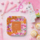 Diese eleganten Teller mit rosa und orangefarbenem Blumenmuster und individuellem Text ergänzen Ihre Babyduschenfeier perfekt. Fügen Sie einfach Ihre eigenen Daten hinzu, indem Sie auf die Option "Personalisieren" klicken.