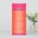 Dieses romantische heiße fuchsienrosa und orangefarbene Hochzeitsprogramm hat ein rosa, PRINTED Band mit einem Paar IMITAT (gedruckt) Glitzer und Diamanten verbunden Herzen Brooch darauf, dass die Einladungen der Hochzeit unten gezeigt.