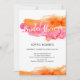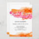 Dieses moderne, lebendige Brautduschen mit Farbtupfern und einem originalen Aquarellbild von Orange- und Rosa-Farbspritzen harmoniert mit einem weißen Hintergrund. Frische und lustige, skurrile Gestaltung. Eine moderne Touch wird mit einem individuell anpassbaren QR-Code auf der Rückseite hinzugefügt, der Ihren Gästen einen einfachen Zugang zu Ihrer Hochzeitswebsite oder zu Ihren Veranstaltungsdetails ermöglicht. Wählen Sie zwischen schön bedruckten Karten oder einem sofortigen digitalen Download, um mühelos das Teilen zu ermöglichen.