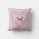 Rosa Orangenblüte und Grüne Herzmonogramm Kissen