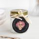 Ein skurriles Halloween-Brautparty mit einer Blumenschmuck-Illustration und rosa orchiden Aquarellfarben-Blume auf einem rauchigen schwarzen Hintergrund. Personalisieren Sie mit benutzerdefiniertem Text in einem runden Layout.