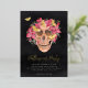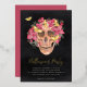 Rosa Orchid Blumenschädel Halloween-Party Folieneinladung