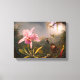 Rosa Orchid und Drei Hummingvögel Leinwand wickeln. Öl auf Mahagoni-Tafel aus dem Jahr 1871. Martin Johnson Heade war ein amerikanischer Landschafts- und Naturmaler, der häufig Vögel und Blume darstellte. Orchideen und Kolibris waren einige seiner Lieblingsfächer, und dieses Gemälde ist eines seiner schönsten. Cattleya Orchid und Three Humingbirds zeigen eine Cattleya-Orchidee, umgeben von zwei brasilianischen Amethysten mit Kolibris und einem roten Schwanz-Sappho Comet-Kolibris inmitten eines Dschungels bei Sonnenuntergang. Ein wunderschönes Geschenk für Fans von Martin Johnson Heade, Orchideen, Kolibris-Gemälde und Naturalistische Gemälde des 19. Jahrhunderts.
