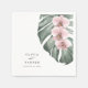 Mit diesem einzigartig schönen tropischen Hochzeitsnapkin-Design erwecken Sie Ihre traumhafte Hochzeitsvision zum Leben. Es verfügt über ein Trio von zarten, rosa Orchideen und ein schönes Monstera Blatt in sanften Aquarellen. Das Design ist schlicht und elegant, mit einem minimalistischen Look, der durch die tropischen botanischen Elemente angeregt wird. Dieses Design ist eine wunderbare Wahl für Hochzeiten an der Küste, Hochzeiten in Urlaubsort oder sogar Hochzeiten in der Stadt, die ein magisches tropisches Thema verwenden. Personalisieren Sie die Textvorlage mit den Namen der Braut und des Bräutigams und dem Hochzeitstag.