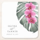 Rosa Orchideen auf der Monstera Tropische Hochzeit Rechteckiger Pappuntersetzer