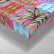 Hübsche, rosa Palmengipfel verschönern dieses abstrakte Kunstwerk, das durch gemischte Medien entworfen wurde, mit Lavendelfarben, Blau und Rot.