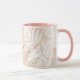 Ein elegantes, modernes, tropisches abstraktes Muster im Sommer. Rustikale Rose goldener Hintergrund und weiße Palmen Blätter. Mit goldenen Pinselstrichen dekoriert mit Imitaten. Geben Sie Ihren Namen und den Monogramm-Buchstaben ein.